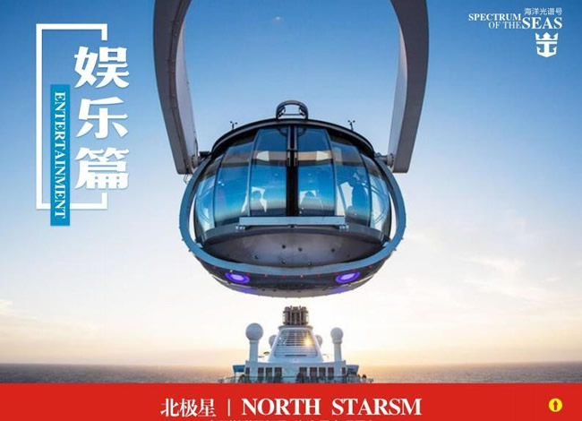 剛剛結(jié)束了岸上觀光, 您有點(diǎn)兒累了?那選擇皇家海洋光譜號(hào)上的【南極 球】感受離開地心引力的刺激, 或者去【皇家大劇院】看一場(chǎng)頂尖的經(jīng)典歌舞 表演吧,讓您在船上就能看到正宗的百老匯表演。還可以靜靜的在【日光浴場(chǎng)】 享受一個(gè)悠閑的下午, 或者和愛人去【悅音廳】靜聽藍(lán)調(diào)布魯斯的悠揚(yáng), 漫步 舞池!晚上的【 270°觀影廳】會(huì)為大家提供全息數(shù)碼投影, 讓乘客體驗(yàn)引人入 勝的跨界表演和燈光秀。還可以參加船上的各種娛樂活動(dòng)、興趣課程、健身運(yùn) 動(dòng)、游泳、沖浪、登上北極星等。還可以看電影、或者到娛樂場(chǎng)開心一把。