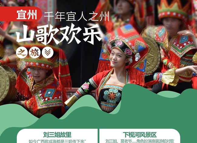 后游覽【劉三姐博物館】劉三姐的傳說(shuō)最早見(jiàn)于南宋王象之《輿地紀(jì)勝》卷九十八《三妹山》 。明清以來(lái),有關(guān)她的傳說(shuō)與歌謠文獻(xiàn)記載很多 ,壯族民間口耳相傳的故事與歌謠更為豐富。2006年,宜州市申報(bào)的“劉三姐歌謠”,入選第一批國(guó)家級(jí)非物質(zhì)文化遺產(chǎn)名錄。劉三姐又稱“劉三妹” ,為中國(guó)壯族民間傳說(shuō)中的歌仙。