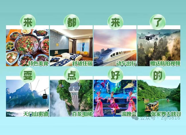 門票:張家界國(guó)家森林公園、百龍電梯單程、張家界大峽谷、天門山國(guó)家森林公園+時(shí)光扶梯單段+玻璃棧道一次性鞋套費(fèi)用、張家界土司城(或老院子)、湘西苗寨、鳳凰古城接駁車、張家界民俗晚會(huì);
